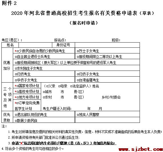 2.2020年河北省普通高校招生考生报名有关资格申请表(草表)