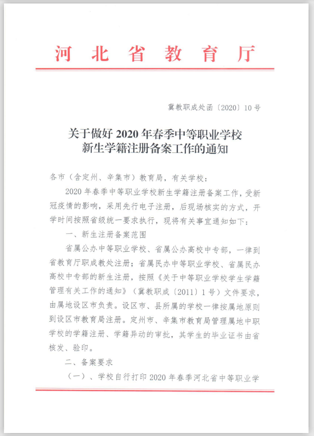 关于做好2020年春季中等职业学校新生学籍注册备案工作的通知