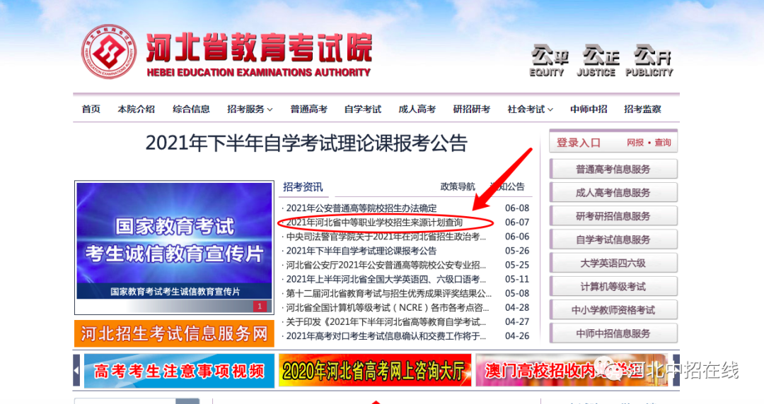 点击【2021年河北省中等职业学校招生来源计划查询】,点击进入信息填写。