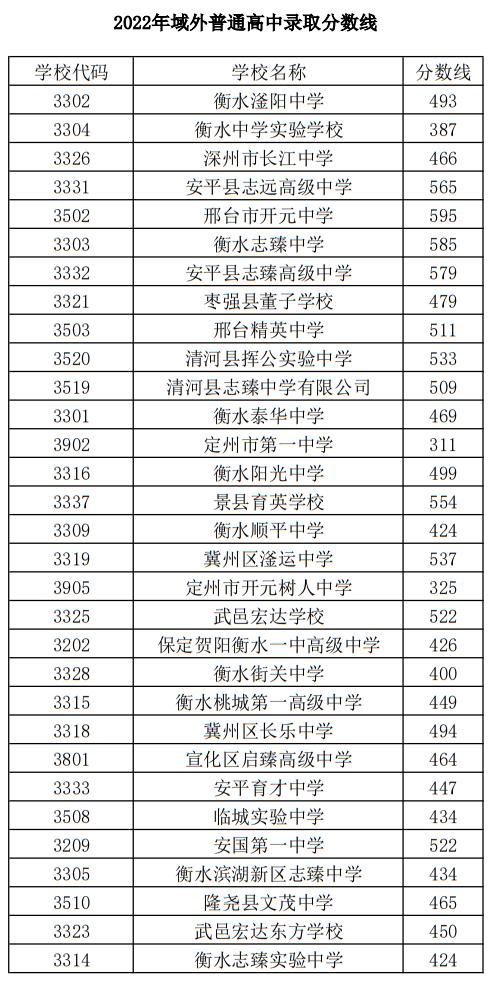 从石家庄市教育考试院获悉,2022年域外普通高中录取分数线如下: