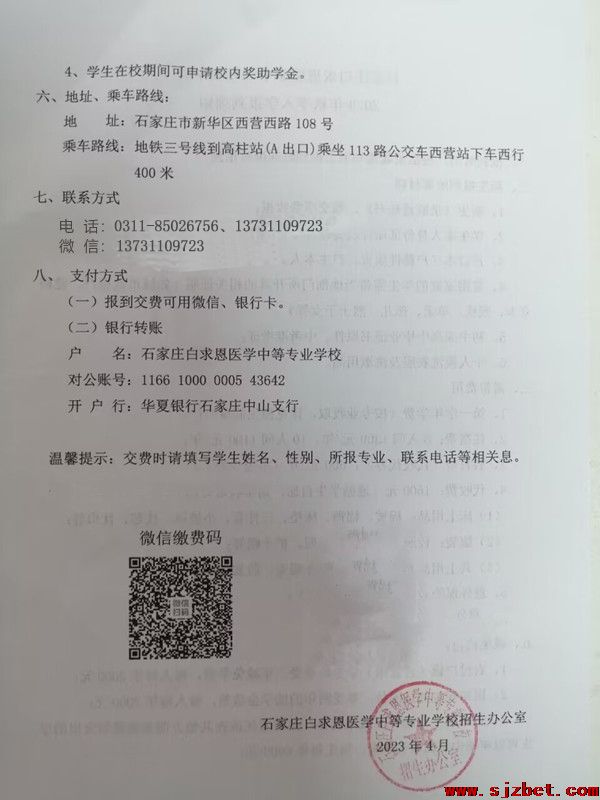 学校招生热线 0311-85026756、13731109723微信号