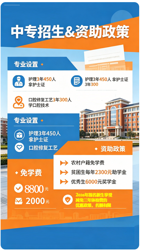 ✅ 重点:所有专业都能走 3+3 单招 / 对口高考升大专,护理、口腔都能考统招大专,和高中生上的大专完全一样,以后能专升本、考编!